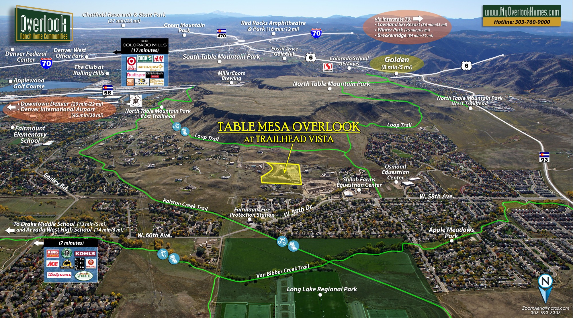 Table Mesa Overlook is situated in Golden, Colorado. We are only five miles from downtown Golden, 20 miles from downtown Denver, and 18 miles from downtown Boulder. The placement of our community offers the best of all worlds – privacy and peace away from the hustle and bustle, and ready access to nearby cities and thruways.